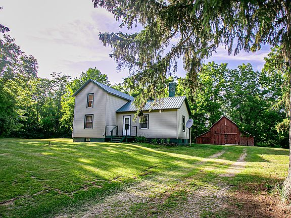 Experience the tranquility and charm of this secluded 2-bedroom farmhouse complete with a barn and silo! Perfectly positioned on just under an acre of land surrounded by serene woods, this property offers privacy and character! Formerly a reliable rental, it's now primed for its transformation into your next home. Freshly painted walls, a durable metal roof, freshly pumped septic tank, main floor primary bedroom, laundry, a spacious dining room and move-in readiness enhance its appeal.