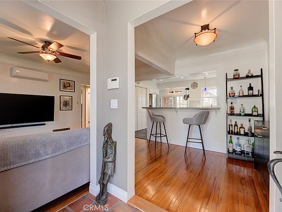 Lovely McCarthy home featuring 3 bedrooms 1 3/4 baths featuring a remodeled kitchen opening to living area with a raised counter bar area, white shaker cabinets, stainless steel appliances including a five-burner range, granite counters, appliances included,loads of counter space, pantry, spacious eating area with a sliding door opening to a covered patio area for outdoor dining and entertaining. Original real hardwood floors are found throughout with tile in both baths and the kitchen. Classic coved ceilings, recessed lights, ceiling fans, a wood burning fireplace in the living room, and a spacious primary bedroom with a wall of closet space. Duckless heating and air conditioning. There is a full inside laundry closet with washer dryer included, two beautifully upgraded bathrooms, dual paned windows. The backyard features a spa and firepit with sitting area. Professional landscaping with fully automatic timers and drip system A custom concrete slab, roomy enough for boat or RV parking with EZ access double gates, and a detached 2 car garage with 240-30amp electrical. This home is not to be missed.