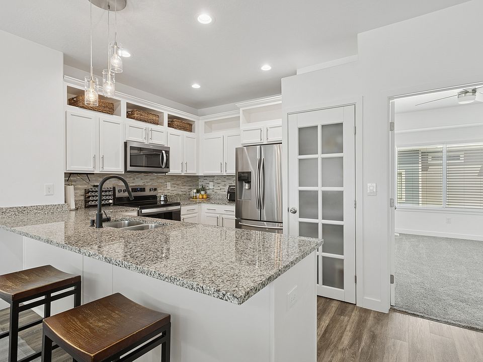 Discover the lifestyle you've been dreaming of in this beautifully designed home, situated in one of Bluffdale's most desirable neighborhoods. You'll enjoy the convenience of being within walking distance to top-rated schools, lush parks, and scenic walking trails, making it a perfect blend of comfort and community. Take advantage of the neighborhood swimming pool, high-speed fiber internet, and other fantastic amenities-all covered by low HOA dues. Whether you're working from home or hosting friends, this home has everything you need for a balanced lifestyle. The open-concept kitchen and great room bathe in bright, natural light, creating an inviting space for relaxation or entertainment. You'll love the luxury of quartz countertops, stainless steel appliances, and modern finishes throughout the home. With spacious bedrooms and two full bathrooms, everyone can enjoy their own retreat. A conveniently located laundry area adds ease to your daily routine. This home is vacant, sparkling clean, and ready for its next chapter-all it needs is you! Don't miss the opportunity to own a modern home in a thriving, vibrant community!