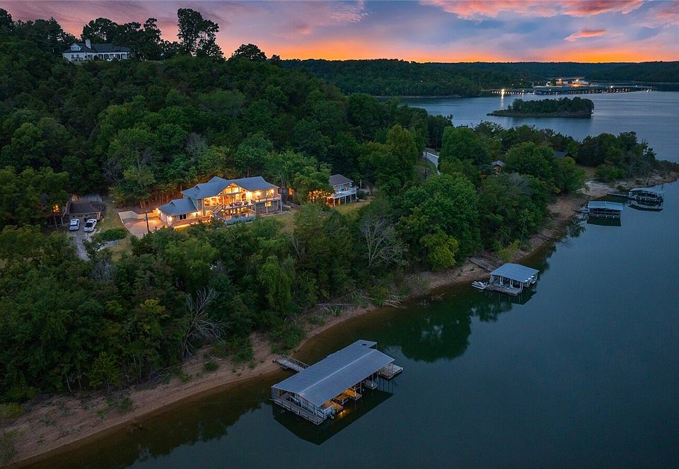 You’ll love this lakefront showstopper featuring soaring glass panels that bring the outdoors in. A rare find, this property is just steps away from the co-owned 4-slip boat dock w/swim deck. Two 10' x 26' slips & lifts convey. This 4,374 SF retreat balances luxury with comfort, offering multiple entertainment areas that flow seamlessly from indoors to outdoors. The main-level primary suite is a sanctuary including a sitting area, spa-inspired en suite bath and separate laundry room. A second Primary, Family Room, and Laundry Room are located on the lower level, along with an office and fitness room. Significant updates include a remodel of all five bathrooms, installing hardwood floors, new roof, 3 HVAC units, whole-house generator, new septic system, and fresh interior/exterior paint. This is a rare opportunity to claim the lakefront retreat you've long desired.