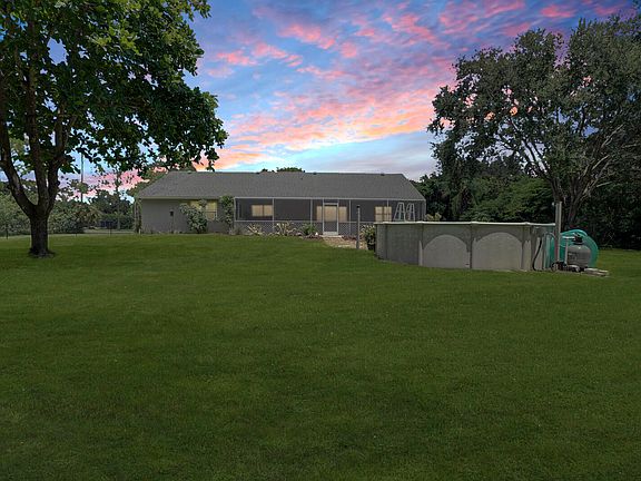 Welcome to this absolutely stunning 3-bedroom, 2-bathroom home in Loxahatchee! Nestled on a perfect 1.15-acre fenced lot, this property is surrounded by mature landscaping with easy access to everything! As you pull into the circular driveway, you'll feel right at home. Step inside to be greeted by vaulted ceilings, upgraded tile flooring, and a thoughtfully designed split bedroom floor plan that invites you to relax and unwind. The completely renovated kitchen and dining area are a dream for anyone who loves farmhouse decor, offering a warm and inviting space for meals and entertaining. Each bedroom has been tastefully upgraded with wood flooring, adding to the home's cozy charm. The master bedroom suite is spacious and features a renovated master bathroom and large closet. The spacious outdoor living area is perfect for entertaining, with a screened-in patio where you can host friends and family or simply enjoy the quiet. A handy pass-through window from the kitchen to the patio bar makes serving guests a breeze.