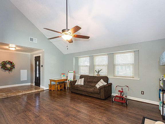 Welcome home to your beautifully updated home in the sought-after Meadow Green community. This spacious 4-bedroom, 2.5 bath home features a functional layout with formal living and dining, a cozy fireplace, and soaring ceilings in the living room and primary suite. Step into your primary retreat with built-in cabinets for storage and an updated en suite bath showcasing an alluring soaking tub. The kitchen offers custom antique cabinetry, a new dishwasher, and views of the manicured backyard. The two-car garage offers direct access through the mudroom into the kitchen for convenience. Updates include fresh paint, new fixtures and ceiling fans, roof and gutters, HVAC, electrical panel/breakers, breaker panel generator plug, and much more. This home has an irrigation system surrounding the foundation, has never flooded, and is move-in ready with no detail overlooked!