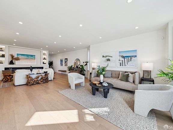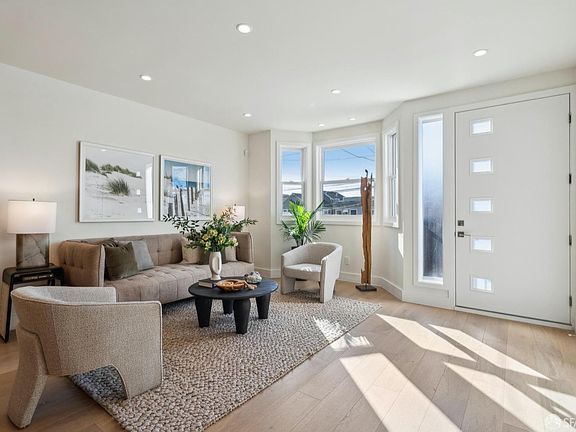 Experience the epitome of coastal luxury in this exquisitely remodeled Outer Sunset stunner. This 4-bed, 3.5-bath home offers three levels of refined elegance and comfort. The grand foyer opens into expansive living spaces featuring opulent finishes and a stunning oversized electric fireplace, setting a warm, sophisticated tone. The gourmet chef's kitchen is a culinary dream with high-end appliances, custom cabinetry, waterfall countertops, and a large island perfect for intimate gatherings or lavish soirees. Upstairs, the serene primary suite boasts a luxurious ensuite with double sinks, an oversized shower, a custom walk-in closet, and access to a private deck. Three additional bedrooms offer flexibility, with one en-suite enjoying ocean views and a walk-in closet. Outside, the terraced backyard features a sprawling deck, perfect for alfresco dining or soaking in the ocean breeze and sunset views. With a 2-car tandem garage, easy access to Ocean Beach, Golden Gate Park, and the shops and dining on Irving and Judah, this home is a rare gem that blends coastal elegance with urban convenience.