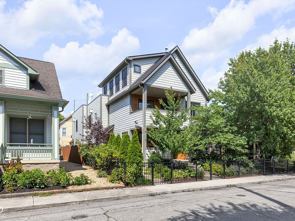 OLD NORTHSIDE :: A one-of-a-kind modern showpiece across from the Monon Trail! This home offers the perfect blend of style, space, and flexibility-whether as a spacious single-family retreat or with income potential from private guest or in-law suites. Featuring 6 bedrooms, 5.5 baths, and 3.5 kitchens, the main level showcases an open-concept layout with Cafe appliances, abundant natural light, and seamless flow between kitchen, dining, and living areas. Upstairs, the primary suite includes a private balcony, huge walk-in closet, and spa-like bath, plus two additional bedrooms and a full bath. The third floor is built for entertaining with a wet bar, full bath, and rooftop deck with skyline hot tub views. The lower level offers two bedrooms, a full kitchen, and bath-perfect for guests or rental use-while the carriage house adds another one-bedroom suite with kitchen and patio. A three-car garage and prime location near the Monon Trail, Mass Ave, and Bottleworks complete this rare find for modern city living!