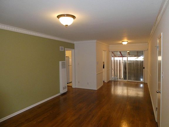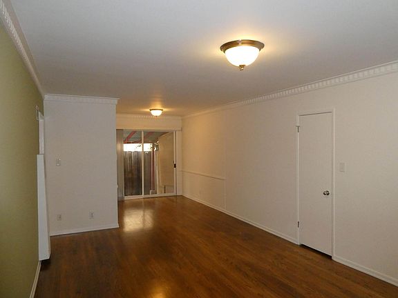 Large one bedroom apartment with private yard, it's a pet owners paradise. Art Deco style, 800 Sq. Ft. completely updated but it's classic style has been maintained with hard wood floors through out. Large main room with crown moldings, overhead lighting and it's own huge closet. Separate dining area, kitchen with included fridge and stove. Large bedroom with double closet, hallway has it's own closet and cabinets, lots of storage. Bath with separate tub and shower. Great space for pet owners as there is a private, fenced, safe secure outdoor patio and yard area. Very unique in Hollywood. First floor of an 8 unit building, easy access to the 101 Freeway and entertainment areas. Includes secure garage parking, laundry room next to communal patio area. This is a very pet friendly building. Water and trash are included, gas and electric are your responsibility. Rent is $1875 and an $1875 security deposit is required. Available now, shown by appointment only. 1 year Los Angeles Rent control