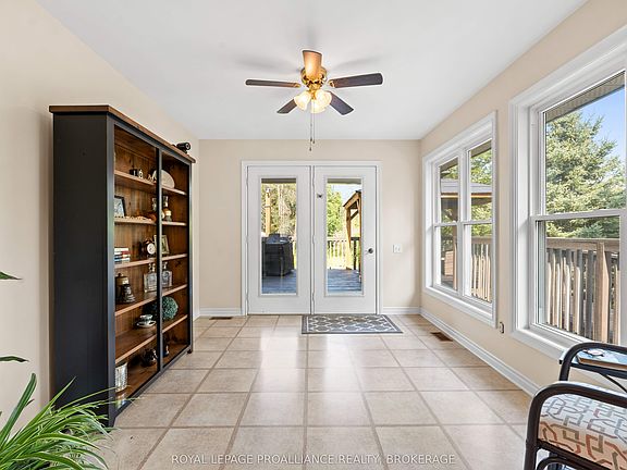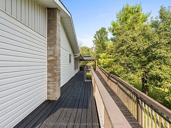 Welcome to accessible living at its finest! This thoughtfully designed 3-bedroom, 2-bathroom bungalow offers comfort, functionality, and space in the peaceful community of Enterprise just a short drive to Napanee and Kingston. Enter easily via the exterior ramp or through the carport, which provides convenient access to a private elevator that leads directly to an extra-large, fully accessible bedroom. This impressive suite features automatic door openers, a custom ceiling lift system for seamless transfers, and a spacious roll-in shower. Enjoy direct access to the deck and gazebo area through patio doors, and a generous walk-in closet designed for ease of use. The main floor boasts an open-concept layout, combining the kitchen, dining area, living room, and a sunroom perfect for entertaining or relaxing in natural light. Two additional good-sized bedrooms and a second full bathroom complete the main level. The walkout basement includes a finished rec room and a large unfinished space ready for customization whether as a home gym, workshop, or additional storage. The home also features an expansive detached garage and a beautiful backyard that backs onto green space, offering privacy and a peaceful natural setting. This home seamlessly combines accessibility with lifestyle, space, and serenity.