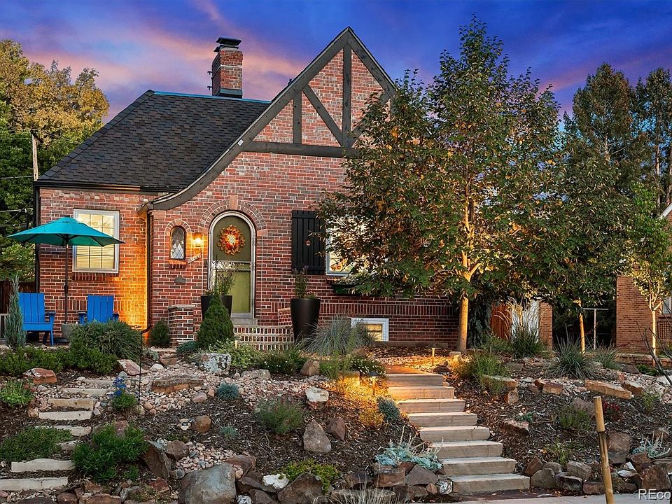 Timeless craftsmanship and modern sophistication define this beautifully restored 1938 Tudor in Denver’s highly coveted Park Hill neighborhood. Set on a picturesque lot, this home offers a rare blend of historic charm and contemporary comfort. The newly designed kitchen is a showpiece—highlighted by exposed brick, spacious culinary marble island, custom cabinets, KitchenAid appliances and south facing windows filling the space with warmth and natural light. Vintage details including original doors and hardware, Batchelder tiled fireplace and window sills, arches and wood floors preserve the home’s storied character. The expansive primary suite is a true retreat, featuring a spa-inspired bathroom with designer fixtures and 3 closets including a spacious walk-in. The main floor features two bedrooms and an original vintage bathroom that has been refreshed and adds an authentic touch of 1930s charm. Enjoy the Colorado outdoors year-round in the gorgeous serene yard, filled with mature low-water perennials, multiple patios, water features, hot tub and Volt-brand low voltage landscape lighting throughout. Updates include: newer windows with custom window coverings, new paint, new sewer line (including tap), new water line, newer oversized two car garage with an electric driveway gate and Certain Teed Presidential roof. Close to top-rated schools, neighborhood parks, and vibrant local amenities—this property embodies the grace and sophistication of Denver’s finest historic homes.