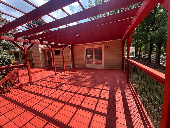 1544 Pine Creek Way is a 3 bedroom 2 bath ranch home off of Braselton Hwy in Lawrenceville. This home has been freshly painted with vinyl plank flooring throughout living and bedrooms. It has a large open living room with stone fireplace and eat in tiled kitchen with bay window. The master bath has double sinks, a large garden tub and spacious walk in closet. The huge private rear deck wraps from kitchen to master bedroom. This home is on a private wooded lot with outdoor storage and a two car garage. Great Lawrenceville location and excellent school district. Lawncare is included. If you would like to view this home please contact our office.