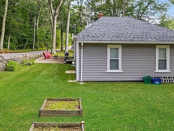 Less than 1/2 mile from North Smithfield high school, and middle school… cozy 2-3 bedroom vinyl sided ranch. Spacious master bedroom with double closets. A small second bedroom off living room, a full bathroom with tub and shower and Lots of country charm flows into the living room and dining room to the kitchen area with a convenient laundry area including washer and new dryer hidden away on the first level. There is also an oversized attached garage off of the kitchen . The house has replacement windows throughout. Attic storage, In 2021 RISE did blown in insulation in the ceilings and walls for super efficiency- there is a full basement that is totally Dry with a DRY ZONE basement system Installed 2019 with two sump pumps. Also has a radon reduction system in place and has an easy generator full house hook up with 200 amp circuit breaker, electrical. Newer septic system was installed 2016. The Roof , plumbing , electrical and heat systems all within the last 8 years too. Plenty of basement storage space. The finished side of basement has a very large space with closet that can be used as a 3rd bedroom or a family room or office . Outside there is an empty Chicken coop and nice outdoor space of almost a half acre (0.44acres) Easy access to 295, 146, .parking for 5 cars easily …. come and see this north Smithfield charmer …