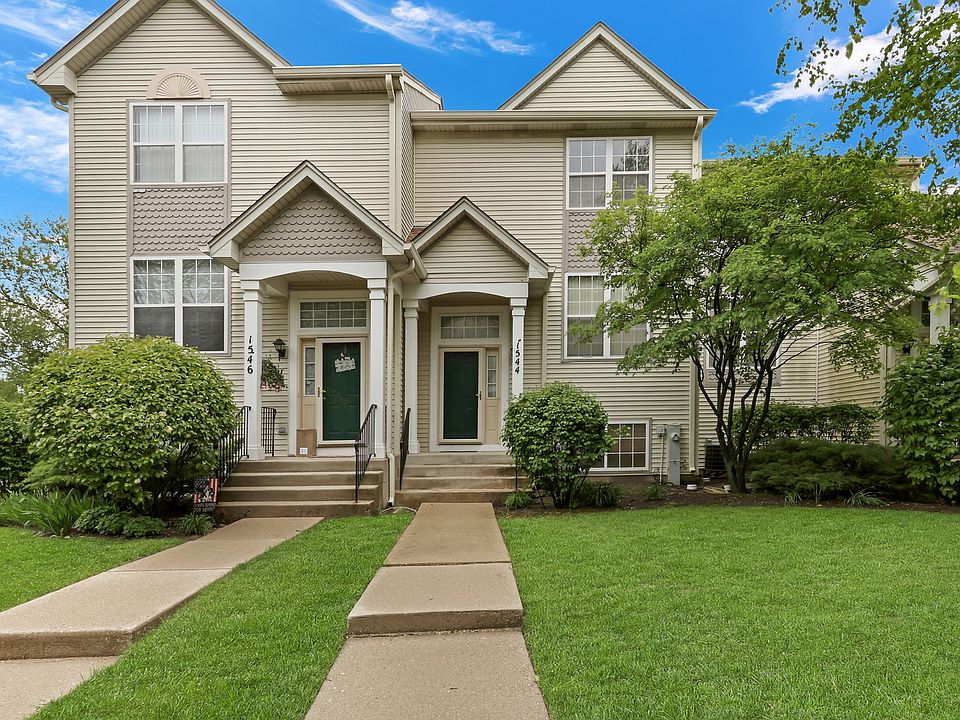 Your search ends here at 1544 Sauganash Court- a beautifully updated townhome that perfectly blends comfort, style, and convenience. Step inside and be greeted by gleaming hardwood floors that flow throughout the main level and staircase, complemented by newly installed chic light fixtures that add a fresh, modern touch. The updated kitchen is a true standout, featuring crisp white cabinetry, sleek quartz countertops, a classic tile backsplash, and brand new stainless steel appliances. There's plenty of room for casual dining, and the sliding patio door leads to a private balcony-perfect for enjoying your morning coffee or evening unwind. The spacious living room offers an inviting space to relax or entertain, while the remodeled main-floor powder room showcases a stylish new vanity and tile flooring. Upstairs, you'll find two generously sized bedrooms, a full bathroom with updated finishes, a versatile loft that's perfect for a home office or cozy retreat, and convenient second-floor laundry. The English basement adds even more living space with new luxury vinyl plank flooring and endless possibilities for a family room, fitness area, or hobby space. A two-car garage adds extra storage and practicality. Ideally located near shopping, dining, schools, and easy highway access, this move-in ready home has it all. Schedule your private tour today-this is one you don't want to miss!