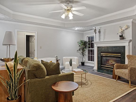 - Features: 9’ Ceiling, Ceiling Fan(s), Crown Molding, Fireplace, Recessed Lighting, Tray Ceiling(s), Built-in Features, LVP