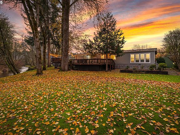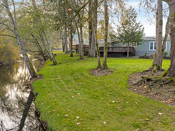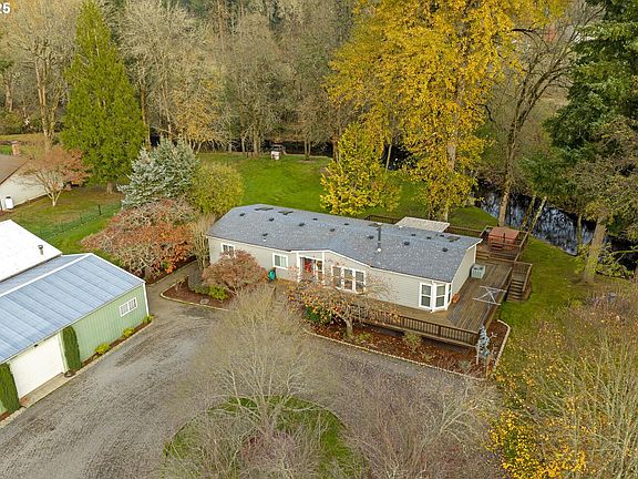 Welcome to your own private retreat tucked away down a long driveway on 1.96 acres with Milk Creek frontage! 30x60 fully insulated shop with roll up door, concrete floor, electrical & attached storage room. 24x60 covered parking for RV's, boats and toys. Gardener's paradise with multiple garden areas, an array of fruit trees all thoughtfully placed for easy maintenance and enjoyment. Entertain on the massive wrap around deck or relax in the hot tub with the serenity of the creek as your very own backdrop. Quality updates throughout the home. Open concept floor plan with lots of natural light. 3 bedrooms, 2 bathrooms, vaulted living room, dining space & family room with cozy pellet stove. Kitchen features hickory cabinets, Quartz counters & island with eating bar. Newer interior paint & flooring throughout. Enjoy the completely remodeled primary bath with walk-in rain shower, dual sinks & high-end finishes. Large laundry room with plenty of storage & new washer & dryer to stay. This is a one of a kind property surrounded by mature landscaping, well thought out gardening spaces and the beauty of Milk Creek. This property includes 2 tax lots for potential future development & an LLC already in place for your own small business possibilities! Pride of ownership shines here!