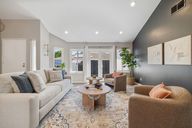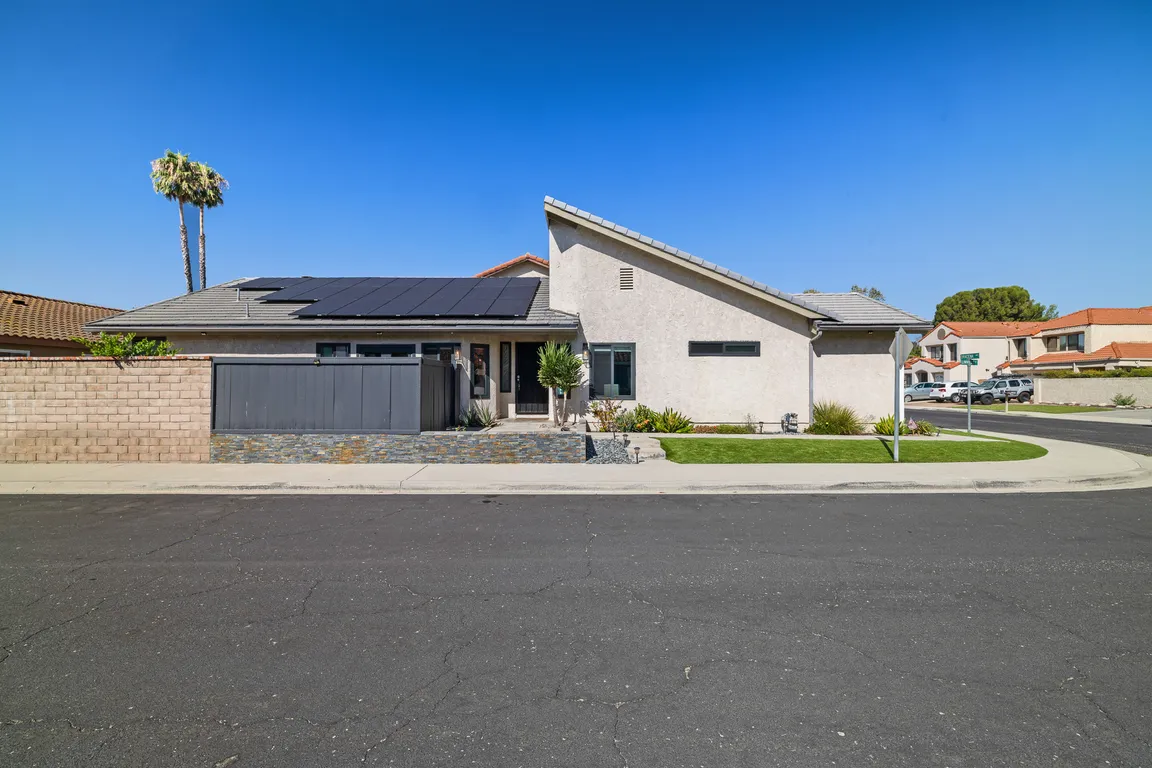 From the moment you arrive, you'll be greeted by stunning curb appeal featuring a stacked stone planter, garden lighting, low-maintenance faux turf, fresh landscaping, and the signature Dracena plant. The angled roofline nods to mid-century modern design, complemented by stylish new gray cement roof tiles and fully owned solar panels. Step inside ...