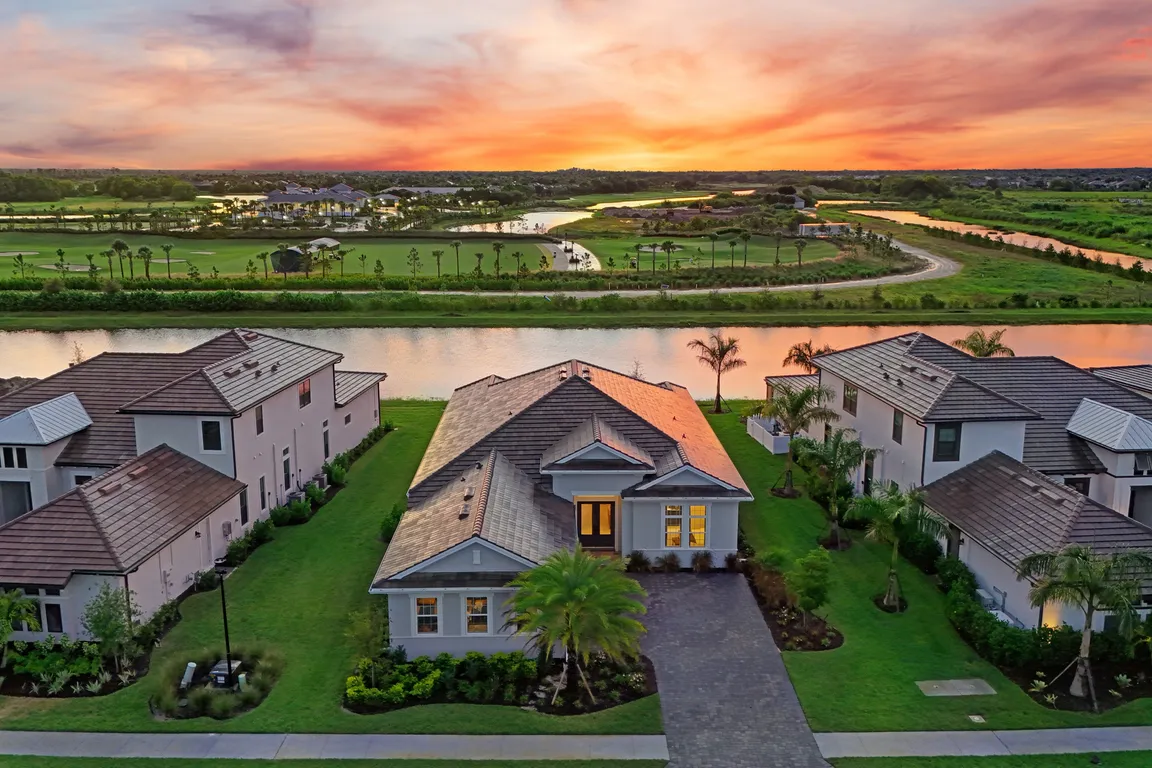 Three-car side-load garageQuartz countertopsFloor-to-ceiling tileOpen-concept layoutPeaceful lakeEnergy-efficient windowsGourmet kitchen