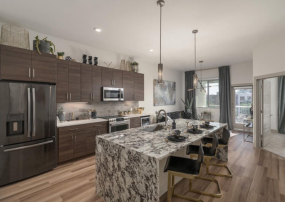 The comforts and conveniences of an all-inclusive resort aren't just for tourists anymore. The District at Scottsdale, offers a luxury escape of penthouse, 1 and 2 bedroom apartments. Our deluxe community includes the high-end designer finishes and modern comforts you deserve with a little something extra. From multi-level 8,000-square-foot clubhouse and oversized 5,000-square-foot fitness center with state-of-the-art equipment to a professional golf simulator and relaxing courtyards with hammocks, The District apartments will make you feel like being home is even better than a vacation.