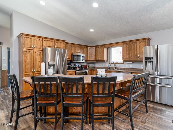 Newer ranch on paved road! 6.71 acres, Xlg 30x30 insulated-floor heated attached garage. 4-5 bedrooms, 3 baths, main floor laundry. Vaulted ceilings, gas fireplace, bay window, lg island/breakfast bar, patio door to composite deck w/wrought iron rail & spindles. Primary suite w/bath, lower level lg family room w/double egress window bedroom, den or 5th bedroom, Xlg storage room, rough-in for 4th bath, heated floors, wall at bottom of stairs swings for easy access. C/A, landscaped, 2 sheds, OFF risk electric, garden area. New shingles 2021.