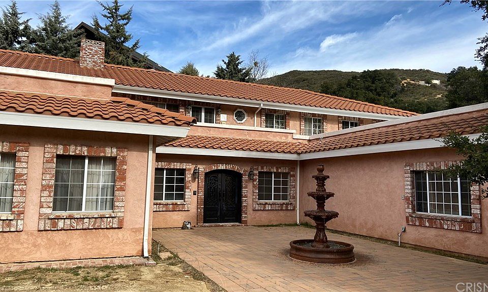 Check out this beautiful Custom Spanish Revival 3-Story home! This 5,304 square foot estate is a 4 bedroom, 3.5 bath home is built on 2.5 acres of horse property with an impressive nearly 360 degree view of the Los Angeles National Forest . A tri-level fountain bubbles as you enter through the double doors enhanced with a beautiful wrought iron design. It is equipped with a large 3 door garage, newly remodeled kitchen, private dining room, a large master bedroom with a fireplace and patio access, 3 huge bedrooms, 2 offices with custom-built desks & cabinetry, and a living family room with french doors that opens up to a generous outdoor patio with an expansive mountain view. The 3rd story is completely dedicated to a huge entertainment room with a built-in wet bar, fireplace, and enough room for a lounge, pool table and poker table! This room opens up to beautiful wrapped-around deck to enjoy the sunset behind the mountains. With the large outdoor areas, and the colored Spanish tile throughout the house, this property is made for entertaining friends and family. Wait! There's more! With over 2 acres of usable land there's plenty of room for horses and a pool or additional entertaining spaces. Don't miss this opportunity to live in style. Relax, you're home!