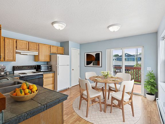 Welcome to easy living in this delightful 2-bedroom, 1-bath walkup unit located in Missoula's Westside neighborhood, just 1.5 miles from the vibrant downtown area. This home features a spacious living area bathed in natural light, perfect for relaxing or entertaining. The kitchen has a bar and space for a dining area, ideal for both casual meals and hosting guests. Enjoy modern conveniences with washer and dryer hookups, and take in stunning mountain views from the newer deck. The unit includes a 1-car garage for secure parking and extra storage. A large common space in the backyard provides an additional area for outdoor activities and socializing.The HOA covers all utilities except electric (current owner pays ~$20-40/month), ensuring a hassle-free lifestyle. A few blocks away is Lowell School with a great playground and splash pad for hot summer days! Around the corner you will find Western MT Growers Coop where you can subscribe to get fresh veggies weekly from local farmers! Walk your dog around the quaint neighborhood with tree lined streets and historic bungalows, stop at Hunters Bay Coffee, or grab a drink and some food at Draughtworks. Don’t miss the opportunity to make this bright and inviting space and awesome neighborhood your new home! Call Leah Whitney (406-274-2578) or your real estate professional.