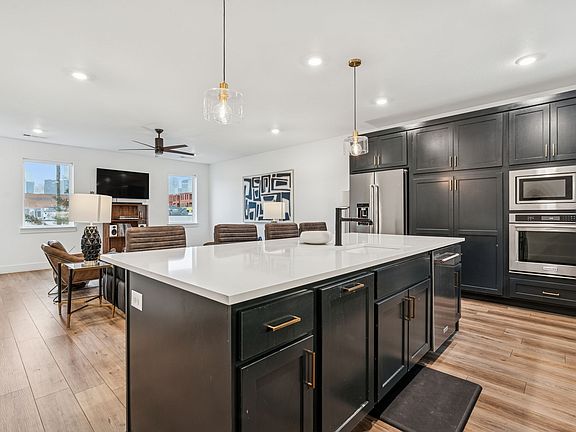 Modern three-story zero-lot home with skyline views in the heart of Dallas. This corner property offers thoughtful design, incredible storage, and multiple living spaces across three well-planned levels. The first floor includes a private bedroom with its own full bath ideal for guests or a dedicated office along with a mudroom, full-size laundry room, storage closet, and direct access to the oversized two-car garage. On the second floor, an open-concept living and dining area is filled with natural light and anchored by warm wood-look floors. The kitchen features quartz countertops, a large island with seating, gas cooktop including KitchenAid stainless steel appliances, custom cabinetry, and a built-in wine refrigerator. A powder bath serves this level for convenience. The second-floor primary suite offers a true retreat with a private balcony, a large walk-in, customizable, Elfa closet, dual vanities, and an oversized walk-in shower. The third floor provides exceptional flexibility with a full-floor game room or second living space, complete with a modern fireplace, full bath, walk-in closet, and access to the expansive rooftop deck showcasing sweeping views of Downtown Dallas. Additional highlights include tall ceilings, designer fixtures, multiple outdoor spaces, abundant storage, and solar panels for improved efficiency. Located minutes from Downtown, Deep Ellum, the Design District, and major medical centers, this home blends style, convenience, and urban living at its best. Landlord is flexible concerning lease terms, and will rent furnished, or unfurnished.