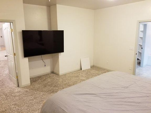 Upstairs and downstairs master bedrooms, both with large walk-in closets. Gas fireplace, two laundry rooms one provided with a washer and dryer (a second W/D set will be installed immediately upon request). Full kitchen on main floor, a second full kitchen on the lower floor walkout. Two refrigerators, two dishwashers, two stoves, two microwaves, heating & A/C, tile. Hardwood and carpeted floors upstairs. Large floor-to-ceiling storage shelves to be built in garage upon request if desired, at no additional cost to tenant. You may park up to five vehicles on the property, no overnight street parking is allowed. Square footage is approximate and taken from county records.