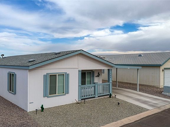 Gorgeous Newer 2023 SilverCrest 3-Bedroom Home in Arrowhead Ranch 55+ Community Welcome to this stunning, almost new 3-bedroom, 2-bath home located in the desirable Arrowhead Ranch 55+ community in Fort Mohave, AZ. This newer SilverCrest model showcases sleek, premium finishes throughout. Enjoy a spacious open-concept floor plan featuring vaulted ceilings, a large kitchen island, and sleek stainless steel appliances. The kitchen is highlighted by beautiful Corian countertops, adding both style and durability. The primary suite includes a step-in shower with linen storage, offering both convenience and comfort. A mix of carpet and laminate flooring flows throughout the home, providing both comfort and practicality. This property also features a large storage/workshop space, along with additional storage for your convenience. The home is equipped with a reverse osmosis (RO) unit and a water softener, ensuring quality water throughout. Arrowhead Ranch offers fantastic amenities, including a pool, spa, and dog park. Conveniently located near shopping, the Colorado River, and Laughlin, NV, this home offers the perfect combination of comfort, style, and convenience. Don t miss this opportunity!