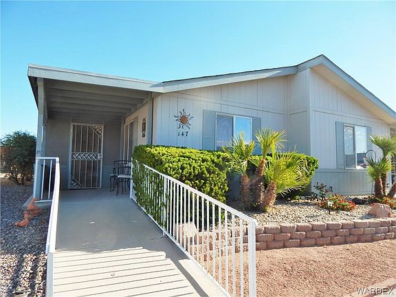 Beautiful doublewide in 55+Avtive Arrowhead Ranch Park Space 147 -- 2 Bed 2 bath with large living space, dining room, large utility room with room for extra Freezer or Refrigerator. Carport and storage shed, Community has with a clubhouse, Pool RV and Boat Parking. Close to shopping, hospitals, and Casinos. Close to community Launch for River access.