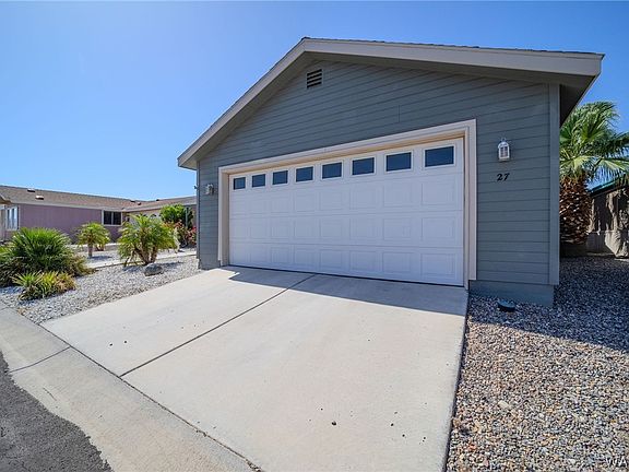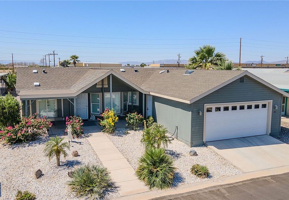 Rare 3 bedroom 2 bath 2 car garage home with enclosed sunroom! This well cared for home is ready for you. Active 55+ community has it all, Clubhouse, Pool, Hot tub, game room, dog park, RV storage and more. Close to shopping, Casinos, Colorado River and desert fun. Monthly Lot rent is $475.