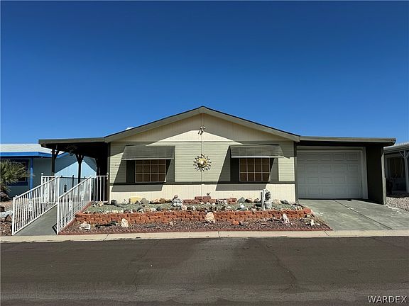 Charming 2-Bedroom, 2-Bathroom Home with Den in Arrowhead Ranch a 55+ Community! This cozy home, nestled within the serene Arrowhead Ranch Manufactured Home Community, awaits your creative touch! With 2 bedrooms and a den, it offers ample space for your vision. While it requires some TLC, this is an opportunity for a handyman or anyone looking to personalize their living space. Come explore this property and turn it into your dream home project! Property is being sold as is no warranties expressed or implied. Close to shopping, restaurants, hospital, the Colorado River & to Laughlin, NV where you have entertainment and nightlife. This property is located on leased land. Lot rent is $475 a month and buyer must be approved by the Arrowhead Ranch Community to live there. Buyer to verify square footage, flood plain, and all pertinent information.