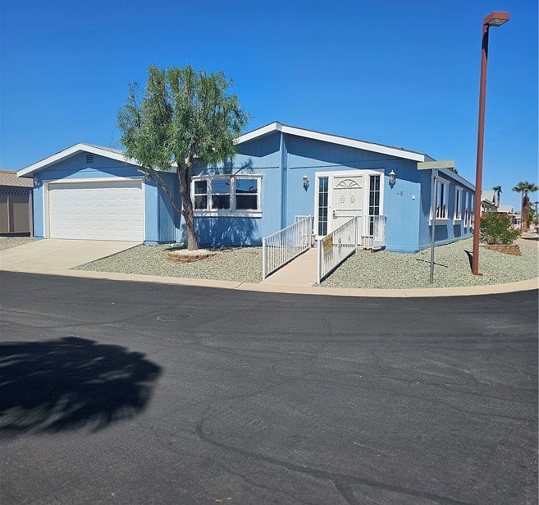 A very unique property in Arrowhead Ranch MH Community. Corner lot with attached garage and fenced back yard. This spacious home offers large living room, large kitchen and dining are, sitting room or office off of master bedroom with a screened patio for outside sitting. This home also features a courtyard/backyard that is fenced for the full enjoyment of our Arizona weather. Vinyl plank flooring, large windows, and mush more. A Must See. The community offers a clubhouse with a very active calendar of events, bingo, bunco, ponies, poker, WII bowling, horseshoes, cornhole, monthly potlucks and more than can be listed. The rec room has pool tables, tv, books, puzzles, and other games. The indoor/outdoor pool is heated to 86 degrees year round, and the jacuzzi/spa is also included. The lot rent is currently $525.00 per month which includes trash. Make an appointment today, won't be on the market long.