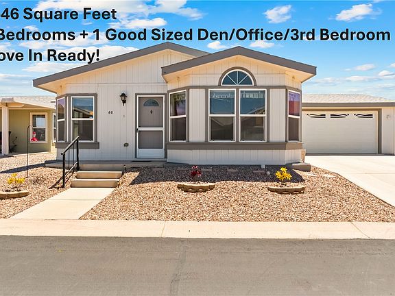 Home is back on the market at no fault of the home! Here's your opportunity again to look at and make offers on this incredibly, well-kept, and move-in ready home. This amazing, one-owner, 2 BEDROOM + DEN/OFFICE/3rd BEDROOM home, which was bought brand new in 2007, has been well-cared for and loved and is in impeccable shape! From the inviting curb appeal in the front to the large, covered patio in the back, this home will check many, if not all, of your boxes. There are 2 well-sized bedrooms, 2 bathrooms, and a large den, which could easily be another bedroom, in this 1,546 square foot home. When you walk through the front door, you'll be instantly greeted with a feeling of relief and ease due the open living and dining areas and the vaulted ceilings throughout. Arranging your furniture won't be a problem here! The kitchen comes complete with an abundance of cabinets and counter space, RO drinking water, plenty of space to prepare meals and/or entertain guests, and all the appliances except the refrigerator. The primary bedroom is quite spacious and has a nice walk-in closet. The primary bathroom features a walk-in shower, a well-lit vanity, and plenty of storage space. The indoor laundry room is a great feature as well and both the washer and dryer will remain with the home. The laundry room leads out the attached garage which is nearly 500 square feet, has finished walls, and an automatic door. The garage and the primary bedroom both have doors that lead out to the covered patio. The covered patio is an exceptional size at 352 square feet and is quite suitable for simply just relaxing by yourself or a great place for entertaining friends and family. Recent updates to this home include: New heat/AC in 2023; new water heater in 2023; new garbage disposal in 2024; new roof in 2014; exterior of the house painted in 2023. This well-kept community has a clubhouse, POOL and SPA, game room with a large screen TV, pool table, and library, a fenced dog area, boat and RV storage, outdoor grilling spaces, and a horse-shoe pit. Don't miss this one! Put it on your list of homes to see.