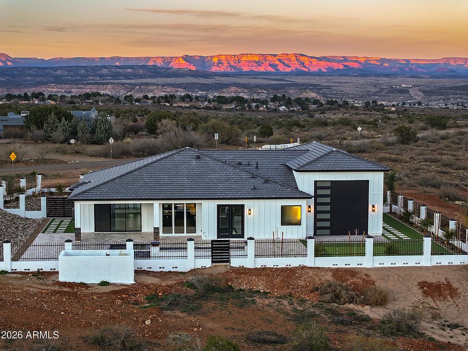 This brand-new custom home blends modern farmhouse charm with contemporary desert design, delivering a rare combination of luxury finishes, functional features, and panoramic red rock views — all set on a sprawling 2.12-acre lot near Old Town Cottonwood and Sedona.