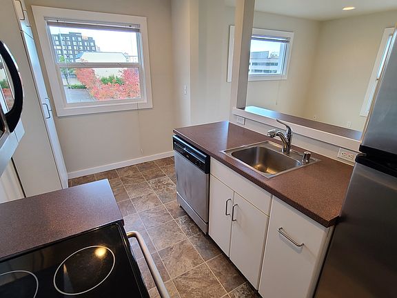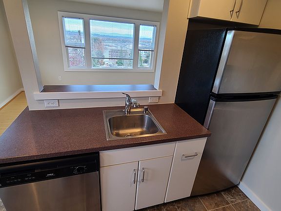 Great views from this downtown location! Spacious top floor 1 bedroom apartment! There is convenient reserved off street parking available, plus a secured entry building! Updated fixtures, dishwasher, microwave, stainless appliances, double pane vinyl windows and energy efficient electric in-wall heating. We are located 3 blocks from Light Link Rail station and across from UW campus and YMCA. We are also in close walking distance to the waterfront, local bars, restaurants, the Tacoma Glass Museum, and Convention Center. This is a Non-Smoking Building.