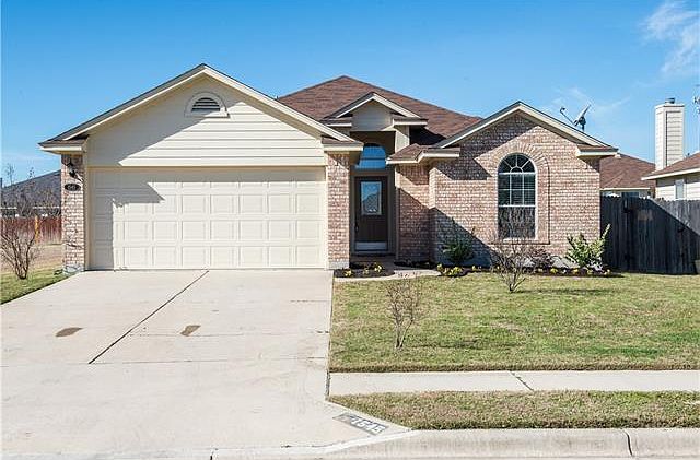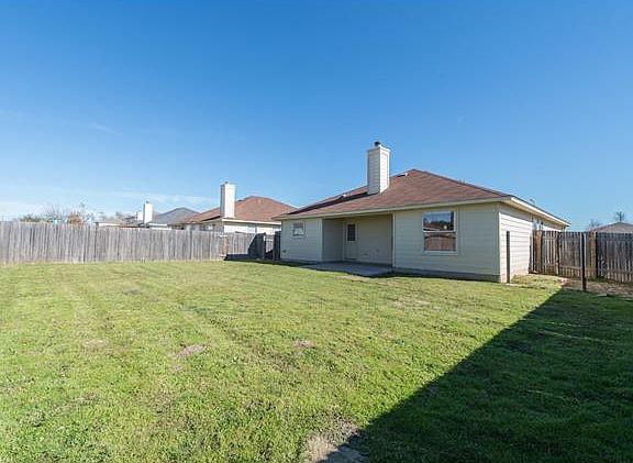 Kitchen open to Family room and breakfast. Great flow through home. Large owners bedroom, with seating area. High ceilings. beautiful fireplace, large windows. Walk in closets. Tile throughout. 3 bedroom, 2 bath, single story home. Easy access to shopping, schools 130 and I35. Great location. Recent Paint. Covered patio on nice sized lot. Neighborhood has two parks, basketball goals, playgrounds, a pavilion, and walk path through the community.