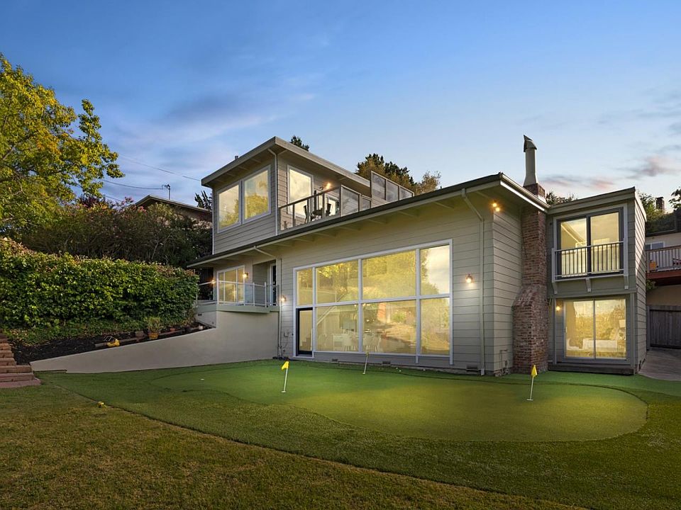 Tucked away at the end of a peaceful cul-de-sac, this stunning contemporary home strikes the perfect balance between luxury and tranquility. The newly remodeled kitchen, complete with modern appliances and sleek finishes, is a chef's delight. The open-concept living and dining area is bathed in natural light, with floor-to-ceiling windows. The top-level also provides sweeping vistas of the Bay, perfect for unwinding with a drink or enjoying serene sunsets. The backyard, designed for the golf lover in mind, features a putting area and sand trap, making it a delightful spot to practice your swing or entertain guests. With lush landscaping and abundant space for outdoor entertaining, this backyard is a true haven. This sophisticated retreat has been thoughtfully updated, offering an elevated lifestyle in an unbeatable location.