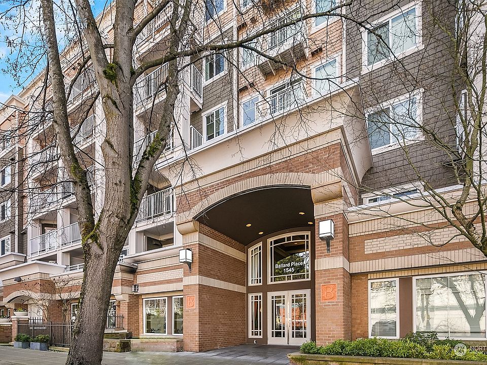 Best Ballard location for easy living. Ballard Place is a desired buildings with low HOA and full amenities- gym, sauna, hot tub, conference center, club room, concierge, plus onsite manager! This condo features an open floor plan with attached Murphy bed. Large bathroom and lots of storage closets. Fresh interior paint and carpet. Cozy gas fireplace and private balcony. Washer & Dryer in unit! 1 secure parking spot and 1 large storage unit. Enjoy at your door step all of Ballards breweries, bars, restaurants, grocery, Ballard Locks & Golden Gardens. Walkscore= 98 BikeScore= 95.