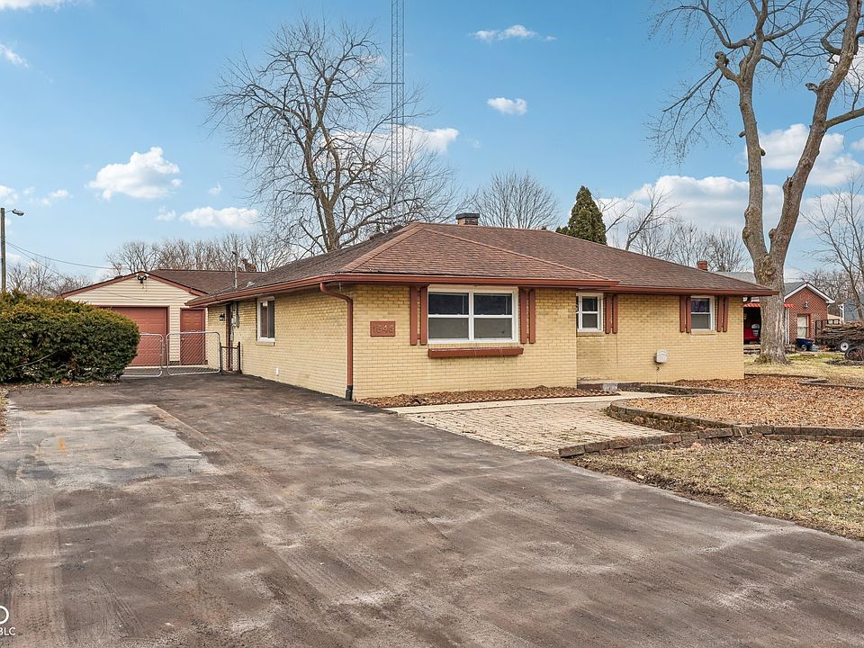 Gorgeous All-Brick Ranch on Indy's Souteast Side! Situated on a large lot with no HOA, this property boasts great finishes, including LVP flooring, custom cabinetry and solid surface countertops. Chef's Kitchen with an over-sized gas range, Luxury Bath with ample storage & 3 good-sized bedrooms. Step outside to your covered patio and enjoy evenings in your private backyard. Large storage barn AND an oversized garage/workshop!