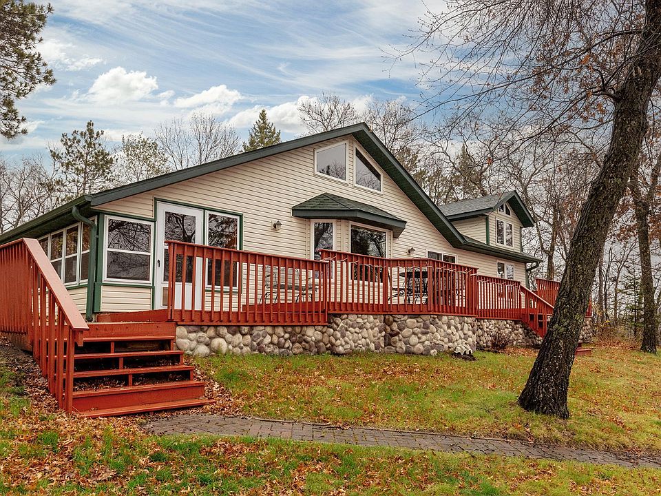 Charming main-floor living with 2 bedrooms, walk-in closet, master bath with jucuzzi tub. Gradual elevation to Gull River situated on a point allowing spectacular sunrises and sunsets. Enjoy your coffee on the deck listening to all the loons on this private setting over looking the Gull River.