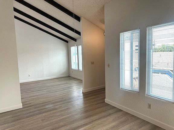 Welcome home to this spacious 2 bedroom, 2 bathroom residence offering approx. 1,100 sq. ft. of comfortable living space. One of our favorite property features is the peaked ceilings with skylights providing abundant natural light. The unit has just been painted and new LVP flooring installed throughout. The kitchen is open to the family room and has a brand new stainless steel gas range. Both bedrooms are generously sized, complemented by two full bathrooms for added convenience. Brand new vinyl windows throughout the unit. Additional amenities include an on-site laundry room, one-car garage, and water service included. Located in the desirable City of Orange, this home combines comfort and convenience. 1-year lease and one month's deposit required. Qualifying income and credit are a must.