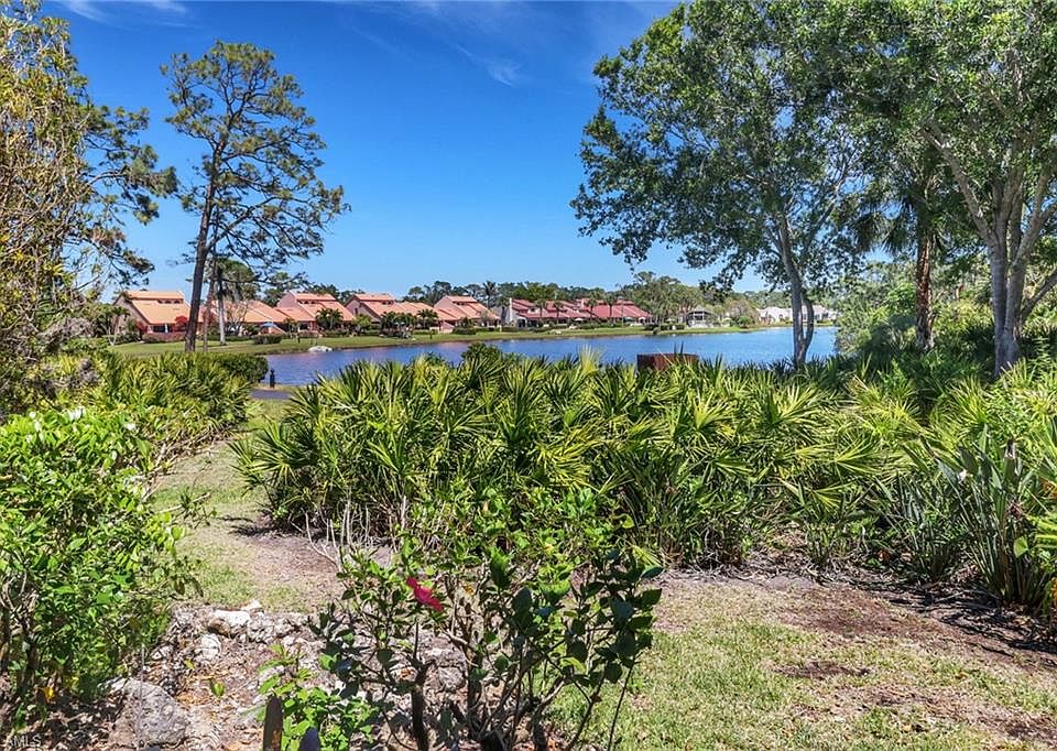 Bay Forest - Naples hidden treasure on the Backwaters of the Gulf! Step through your private courtyard entry into this bright airy first floor residence featuring 2 bedrooms and 2 baths. The open kitchen shines with white cabinetry, unique granite countertops, and stainless steel appliances. Both bathrooms have been tastefully updated with matching white cabinetry and granite counters, making this home truly move-in ready! Start your morning on the screened lanai, sipping coffee while enjoying serene lake views and tropical landscaping. This well maintained home offers peace of mind with a new roof (2021) and new A/C (2024). Bay Forest offers a lifestyle like no other - explore the newly reconstructed boardwalk that winds through the mangroves and backwaters to a Chickee Hut seemingly floating on the water. Enjoy 2 miles of walking paths meandering through the lakes and preserves, along with active community that features a fitness center, pickleball, tennis, bocce, line dancing, art classes, yoga, mah jongg, social events and more! The clubhouse features a new roof, fresh paint and updated flooring, with front entry landscaping improvements scheduled for completion by year end. With its scenic nature trails, sparkling lake views, and vibrant social scene, Bay Forest remains one of Naples true hidden treasures!
