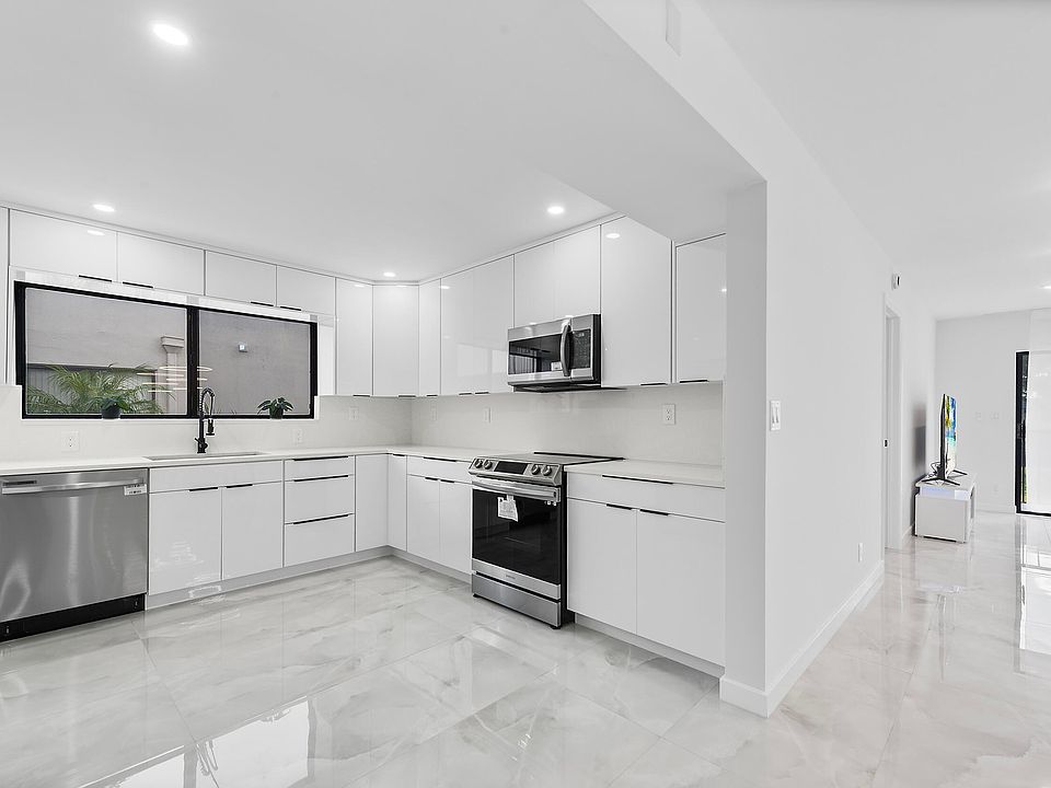 Stainless steel samsung appliancesPeaceful canal viewsElegant porcelain floorsSpacious kitchenRecessed lightingSatellite poolStunning oversized showers