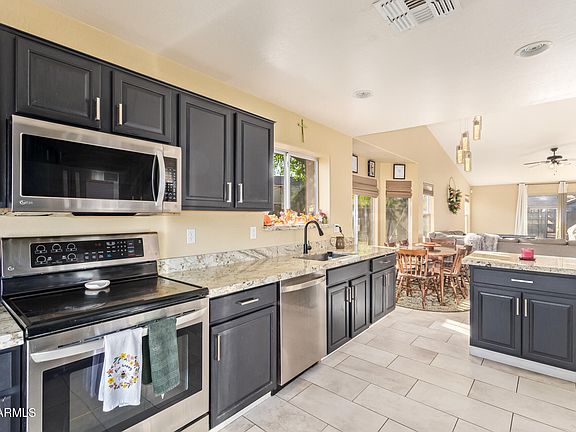 Military PCS Alert: Priced to Sell Fast! This charming 4-bed, 2-bath single-family home offers 1,716 sq ft of comfortable living on a massive QUARTER ACRE LOT in Surprise. Built in 2004, it features vaulted ceilings, tile floors, and LVP flooring. The remodeled kitchen is a chef's dream with granite counters and stainless steel appliances. Your backyard oasis is ready: Heated Pool, Spa, Gazebo, and outdoor fireplace. You're minutes from Luke AFB and the new Prasada Shopping Center. Enjoy easy access to Westgate, Arrowhead, and Tanger Outlets. A true Arizona gem with a huge yard—won't last! Welcome to your new home at 15450 W Hope Dr in Surprise, Arizona!