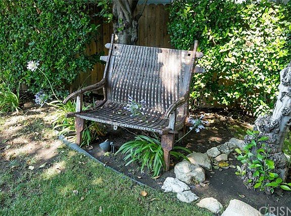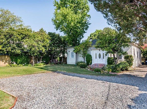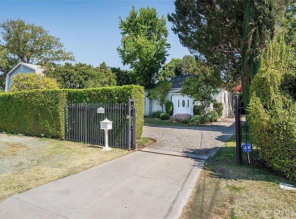 1920's gem with original charm combined with modern upgrades, and currently one of the lowest priced listings in the Hesby Oaks K-8 school area! Gated for privacy, a lovely front lawn with nice landscaping and a brick winding path leads to the front door. Enter to a foyer opening to the living room with hardwood floors, high ceilings, a brick fireplace, and ceiling fan fixture. The kitchen has been remodeled with travertine floors and tumbled stone counter tops and there is an adjacent dining area and laundry room. There are three bedrooms including a newer master suite. The master suite has hardwood floors, high ceilings, and sliding French doors leading out to a patio deck. The master bathroom has travertine, a soaking tub, stall shower, dual vanities and walk-in closet. The other two bedrooms share a Jack and Jill remodeled bathroom. It is located close to the freeway but the tall freeway wall blocks out the majority of the noise and because it is by the "onramp" the noise is minimal at this location. Nice rear yard, and detached two car garage at the rear of the lot has been converted to a storage room (garage door has been removed). Currently house is being used as offices which is an ideal use for the property, or can be a development opportunity.