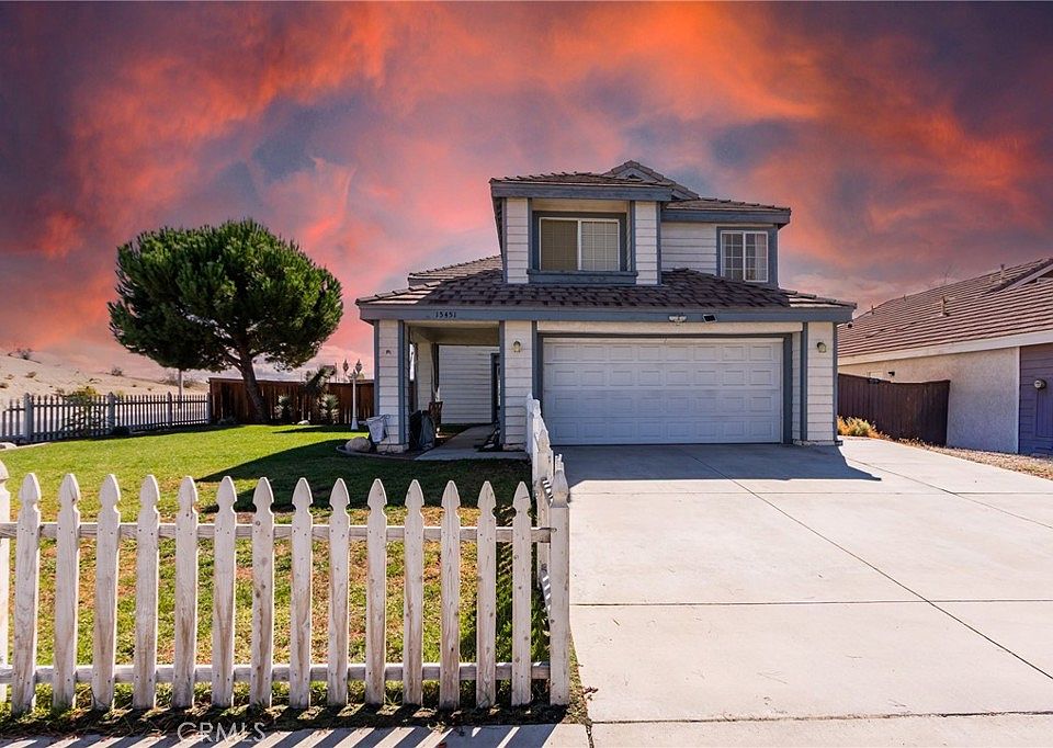 Imagine starting your day on a charming corner lot, stepping through a white picket fence and onto a cozy front porch, where a hanging outdoor love seat swing invites quiet mornings and soft evenings. The front yard, carefully maintained, sets a peaceful tone before you enter.