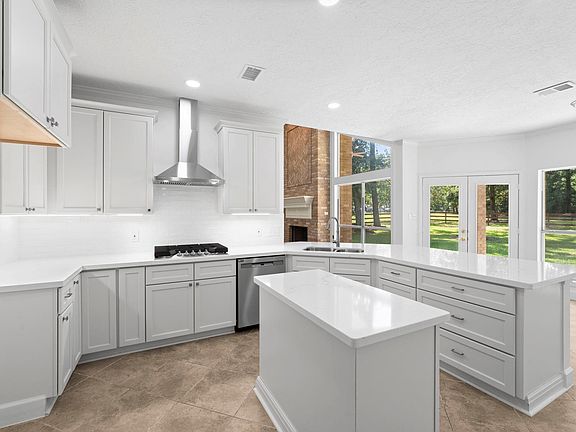 Recently Updated Residential or Commercial Estate on 3 Acres located just off FM1488 near The Woodlands. Rare 1 story home with 3 car detached garage and pond beyond a Private Electric Gate await you! Spacious, Open, Split Floor Plan with soaring ceilings! All New Paint and Luxury Vinyl Plank Flooring. New Kitchen and Bathrooms will excite you with neutral colors and stylish finishes. Primary Bedroom is Huge with sitting area and french doors that lead out to oversized rear covered patio. Primary Bath offers a luxurious soaking tub and oversized tiled shower, dual sink vanities and a massive closet. Secondary bedrooms w/Jack and Jill Bath. A game room or home office could be another bedroom. Open Updated Kitchen w/ New Stainless Appliances and Gas Cooking Opens to Breakfast area and Nearby Huge Utility Room. There's a playset in back yard and so much space for someone looking for a private retreat or a home/business option located near end of a quiet street near cul de sac.