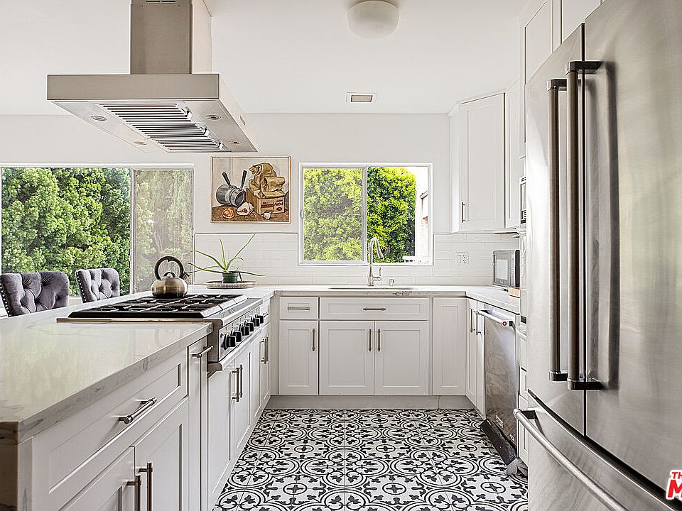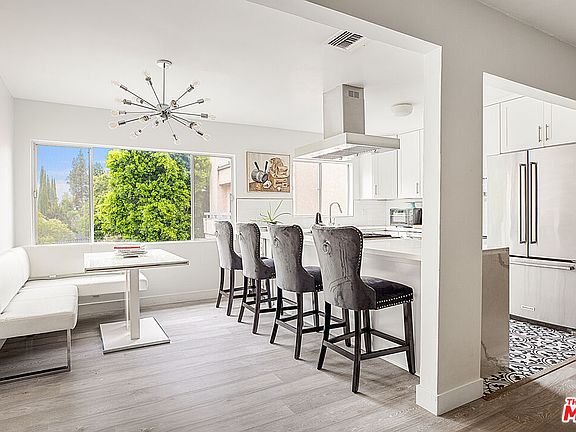 The ideal home for a chef or cooking enthusiast, this 2 bedroom top-level corner unit delivers a balance of classic design and modern finishes. Chef's-style, open kitchen boasts an abundance of natural light and updates, including Calacatta Creek quartz counter tops, cantilever serving bar, stainless steel GE "Monogram" gas range & Windster external-vented hood, a 48-bottle U-Line wine refrigerator, and porcelain patterned tile flooring. The open floor plan is the ideal space for cooking, dining and entertaining. In addition to the kitchen, current renovations include wide plank wood flooring, an updated full bathroom with floor-to-ceiling mosaic marble wall coverings, contemporary deep-soaking bathtub and lighting. Exclusive one-car garage. Location is walkable to to Ventura Boulevard, Sherman Oaks Galleria, Burke Williams Spa, Whole Foods Market, retail, dining and services. OFFER DEADLINE: 9/1/2021 AT 12:00 Noon.