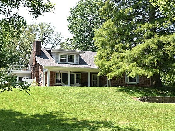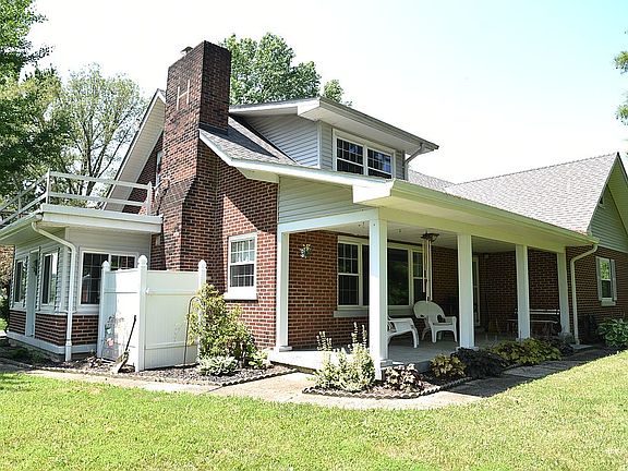 This peaceful and parklike setting is nestled back a one-mile-long driveway providing plenty of seclusion and privacy on 19 acres of paradise. This charmer was remodeled in 2006 and incudes over 2600 sq ft, plus full basement and a new roof in 2020! Three porches to take in all the views, one of which is enclosed. Finished office(13x25) in basement with additional fireplace. Outside is a 40x54 barn, grain bin,24x22 detached garage, fishing pond with dock, small stream. Just a gorgeous property!