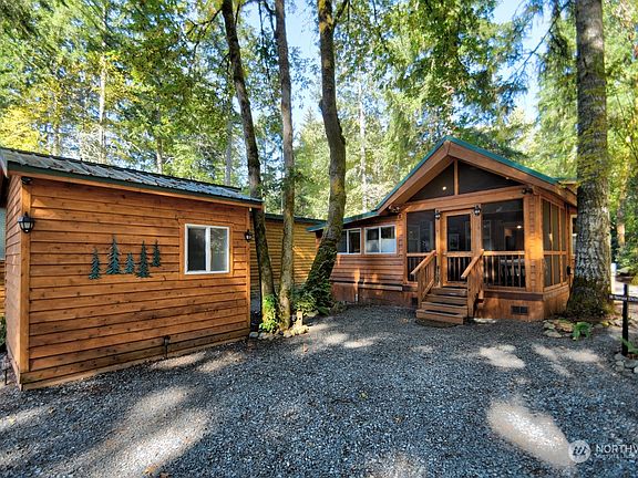 14 Spruce Lane discover your perfect retreat. This move-in ready Park Model cabin boasts 1,032 sq ft of cozy living space, including a loft, all nestled against a tranquil forest backdrop. Enjoy year-round comfort with ductless heating and air conditioning, plus the convenience of a washer and gas dryer. Unwind on the charming screened-in front porch and benefit from two bathrooms and a finished 10 x 12 shed for many possibilities; storage/craft room/reading room! With a 120-gallon underground propane tank, this cabin is equipped for efficient living. Become part of the vibrant Lost Lake community, featuring a clubhouse, private lake, pools, sports court, fitness area, and scenic trails. Your dream getaway awaits!