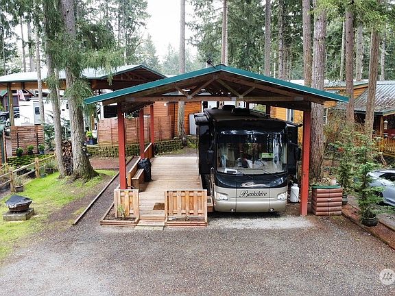 *PRICE LOWERED*. Move in ready with all utilities, located on 41 Hemlock in the nature of Lost Lake Resort. This RV lot has a large pole barn cover on a 3371 sq t lot with a newly added 10 X 40 deck with a shed for storage. Beautiful split rail fencing on one side of the property with a nice garden area and room for more. COA perks encompass an indoor/outdoor pool, hot tub, sauna, well equipped gym, pool table, pickleball, mini golf, playgrounds and hiking trails. The clubhouse hosts community events creating a hub for swimming, fishing, kayaking at the captivating Lost lake. (Motorhome is NOT included)