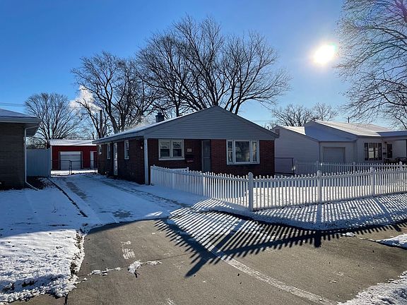 Brick Ranch in West Kankakee with charming white picket fenced in front yard. Open concept floor plan with large eat in kitchen and breakfast bar. Inviting living room with bay window, offering fabulous natural lighting throughout home. Large master suite with double door closet. Second bedroom with nice sized closet. Massive bathroom with soaking tub and separate shower. Laundry closet in bathroom. Back yard is partially fenced. Man Cave Alert, 3 car shed in backyard. Home has been freshly painted with all NEW flooring. Recent updates - HWH, light fixtures. North 1/2 of roof replaced 2021.