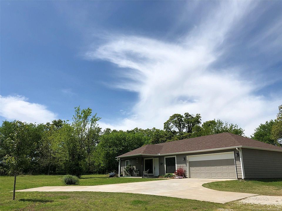 A little peace and quiet! Down a private drive near Claremore Lake, you'll find this gem on 2.7 acres. On this unique property of open spaces and giant oaks sets a super sweet home built in 2015 that's customizable! (Builder owned) Semi open plan that's currently 2/1 with an over sized 2 car garage and a workshop